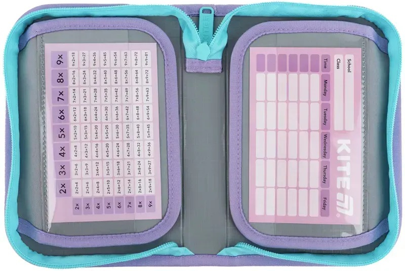 Пенал Kite допоможе дитині завжди бути зібраною та організованою. Ідеальна модель для учнів початкової школи віком від 6 років: наймісткіша та найзручніша для першокласників. Все необхідне – в одному пеналі! Адже на заняттях діти не лише пишуть, а також розфарбовують, вирізають та малюють. Пенал із двома додатковими відворотами та практичним внутрішнім органайзером вмістить увесь базовий набір канцелярії на кожен день. Так зручно, коли всі потрібні канцтовари завжди під рукою. У пеналі легко підтримувати порядок. Ручки, олівці, лінійка, фломастери, ножиці, гумка та точилка: кожен предмет залишатиметься на своєму місці, акуратно зафіксований резинкою. Еталонна європейська якість – гарантія довгої служби. Кожна деталь пенала виконана бездоганно. Принт не тьмяніє і довго зберігає початкову яскравість. Внутрішнє покриття ПВХ легко очищається від забруднень. Пенали Kite готові до насиченого шкільного графіка, чудово справляються із частими відкриттями-закриттями на кожному уроці.