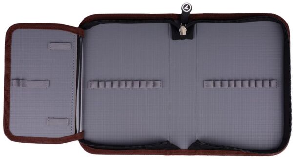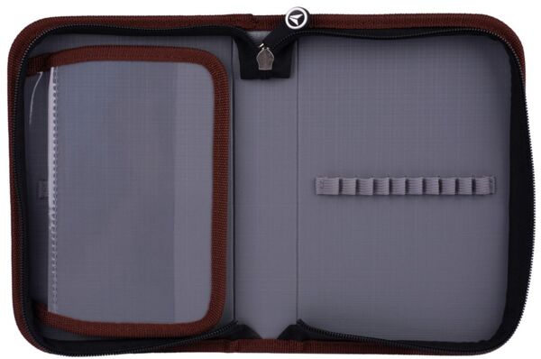 - Одне містке відділення на застібці-блискавці з додатковим відворотом для розміщення канцелярського приладдя.
