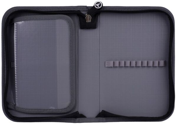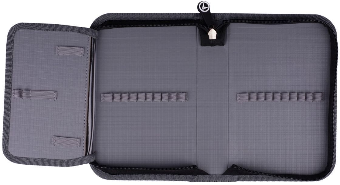 - Одне містке відділення на застібці-блискавці з додатковим відворотом для розміщення канцелярського приладдя.