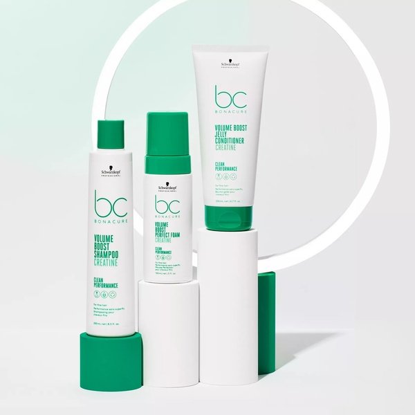 Bonacure Volume Boost Perfect Foam призначена для клієнтів з тонким, ослабленим волоссям, яке виглядає млявим і злегка пористим, які шукають незмивний засіб для догляду за волоссям, що запобігає утворенню статичної електрики, водночас збільшуючи об'єм волосся.