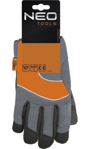 Рукавички робочі NEO розмір 10 ". Забезпечують захист від бруду, подряпин, мозолів і інших шкідливих умов в процесі роботи. Виготовлені з високоякісної синтетичної шкіри. Відрізняються високою стійкістю до розриву. Забезпечують комфорт під час експлуатації, разом з тим запобігають вислизання інструменту з рук. Великий палець покритий м'якою махрової тканиною, для витирання поту при роботі. Рукавички імєєют укріплені шви і регулюються застібкою-липучкою. СЕ-маркування – це гарантія безпеки, що підтверджує, що виріб відповідає всім вимогам європейських директив. Бренд NEO виправдовує очікування професіоналів.