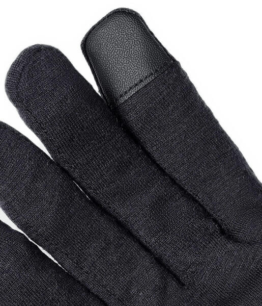 Матеріал виготовлений, переважно, з мериносової шерсти, яка добре регулює тепло, неймовірно м’яка і приємна на дотик, не викликає подразнень і має антибактеріальні властивості. Властивості шерсти посилені додаванням у тканину поліамідних волокон, які надають їй міцності та еластичності. Рукавиці дуже добре прилягають до шкіри та важать всього лише 25 г. Область пальців підходить для використання сенсорних екранів, тож ви зможете зробити фото чи звірити маршрут на смартфоні, не знімаючи рукавиць.
