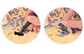 У наборі Привиди малюк знайде яскраву красиву листівку із зображенням старовинного будинку, а також безліч перекладних наклейок із забавними привидами. Наклейки легко переносяться з паперової основи, досить лише докласти картинку на розворот листівки і потерти зворотним кінцем олівця, кулькової ручки або монеткою. Таким чином, діти можуть створювати власні історії і придумувати різні сюжети в ході гри.
