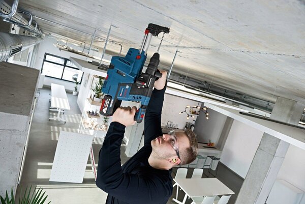 GBH 187-LI Professional - чемпіон з ефективності, коли мова йде про швидкість свердління та кількість отворів на одному заряді акумулятора завдяки безщітковому двигуну та оптимізованому механізму. Функція постійної швидкості постійно підтримує швидкість свердління. Акумуляторний перфоратор зручніше тримати в руці завдяки L-подібній формі. Він пропонує такі функції, як контроль вібрації та контроль віддачі, для роботи з відмінним співвідношенням ціни та якості. Легко читабельний дисплей відображає рівень заряду акумулятора.