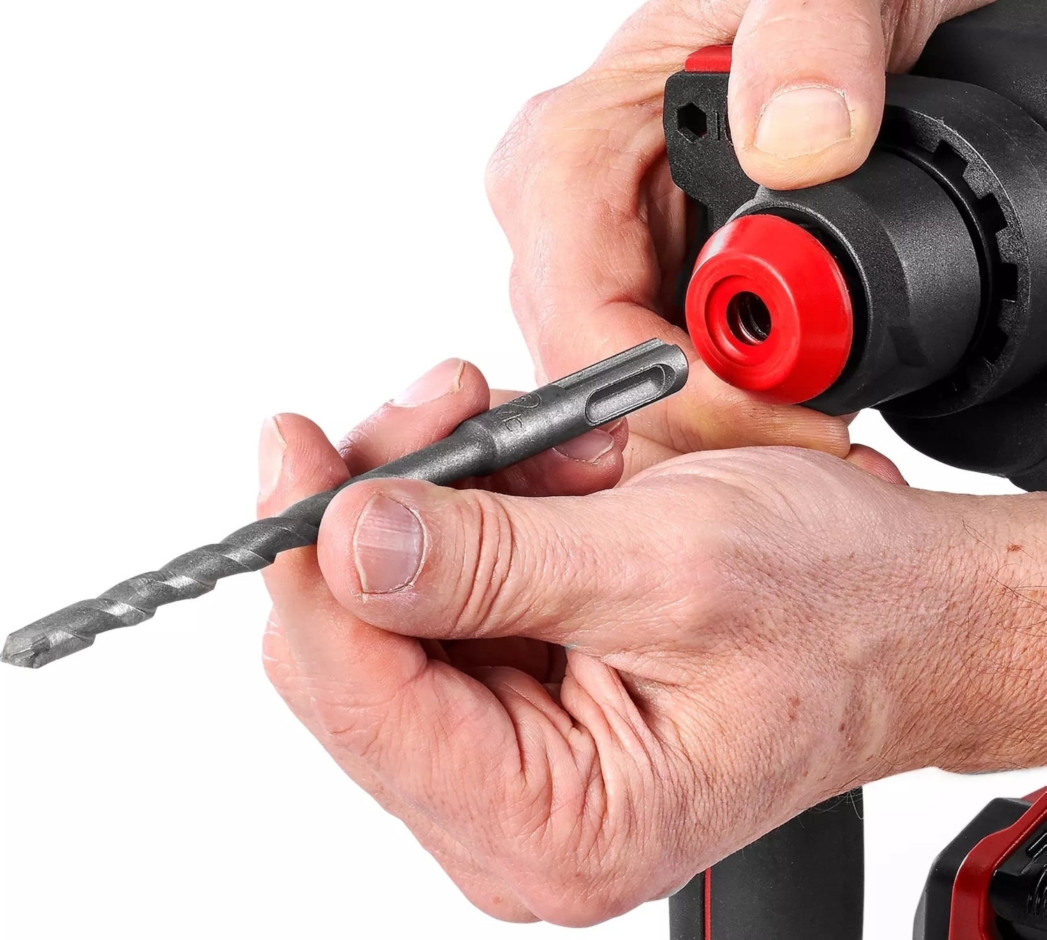 Завдяки універсальному патрону SDS Plus з напівавтоматичним режимом роботи можна швидко та надійно замінювати різні свердла та зубила.