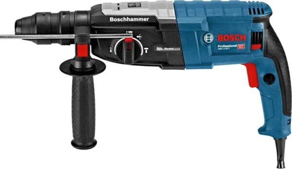Перфоратор Bosch GBH 2-28 F Professional зі швидкозатискним патроном — найпотужніший інструмент у категорії дротових перфораторів Bosch SDS plus. Його міцний двигун забезпечує енергію удару 3,2 Дж для високої продуктивності свердління. Перфоратор також оснащений системою KickBack Control для підвищеного захисту користувача та системою Vibration Control для легкої та безперервної роботи в умовах тривалих навантажень. Цей інструмент призначений для свердління та довбання бетону, цегли, дерева та металу. Він сумісний з різними насадками для пилу. GBH 2-28 F Professional також оснащений режимом реверсу, муфтою контролю обертання, змінною швидкістю та Vario-Lock.