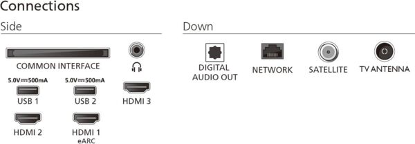 | Особливості | Блокування від дітей, Датчик освітленності, Таймер сну, Телетекст, Управління за допомогою смартфона |