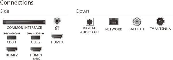 | Особливості | Блокування від дітей, Датчик освітленності, Таймер сну, Телетекст, Управління за допомогою смартфона |