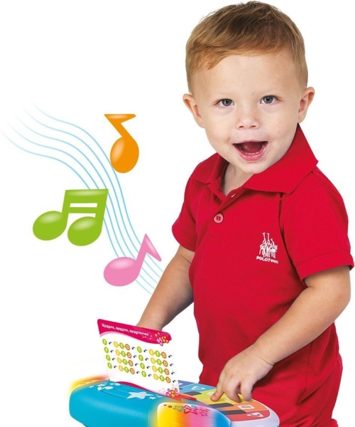 - 12 клавіш з 24 мелодіями — кожна клавіша має свій колір для легкого запам’ятовування;