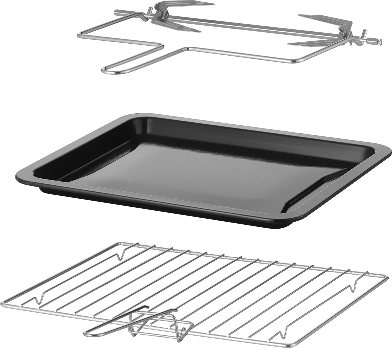 | Комплектація | Рожен, Документація, Піч, Деко прямокутне, Решітка для гриля, Ручка для вилучення рожна, Ручка для вилучення деко |