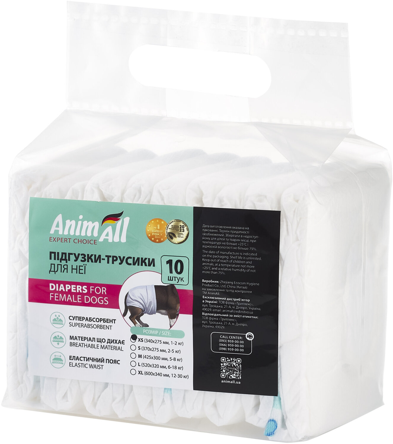 Підгузки для собак AnimAll XS талія 15-33 см, вага 1-2 кг