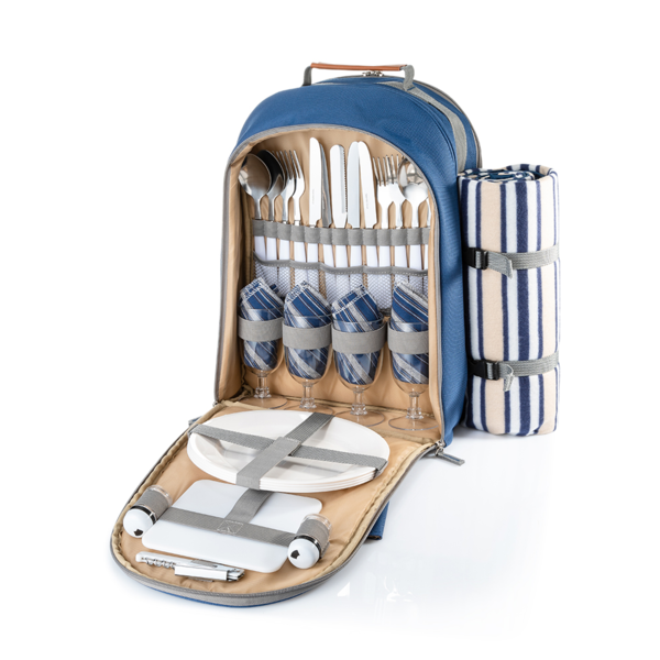 Для тих, хто легкий на підйом, цінує свій час та вміє насолоджуватись дійсно продуманими та зручними девайсами, представляємо мультифункціональний пікніковий набір 3-в-1 “Easy go”. Це ізотермічна сумка, флісовий килимок та комплект необхідного посуду з приборами для пікніку. Все складається у вигляді компактного зручного рюкзака. Не гай ні хвилини, клади сандвічі та напої всередину, кидай рюкзак на плечі і вперед! Набір включає комплект посуду та приборів для 4-х осіб із високоякісної харчової сталі та безпечного для здоров‘я харчового пластику. В ізотермічний відділ на 15 літрів помістяться напої для всієї компанії, контейнер із замаринованим м‘ясом для мангалу та свіжі овочі для салату. Ви можете влаштувати довгу та насичену велосипедну прогулянку із ефектним завершенням у вигляді смачної трапези на природі - навіть після 8-ми годин на сонці, напої залишаться прохолодними, а м‘ясо не зіпсується. Зовнішні матеріали рюкзаку та внутрішній шар ізотермічного відділу виконані виключно із сучасних матеріалів. Високі показники зносостійкості не дадуть рюкзаку вигоріти на сонці, а антимікробні властивості - обзавестись сторонніми запахами всередині. Пікніковий набір виконаний у вигляді стильного рюкзака, його зручно брати з собою, якщо ви плануєте сумістити пікнік на свіжому повітрі із прогулянкою містом чи на велосипеді.