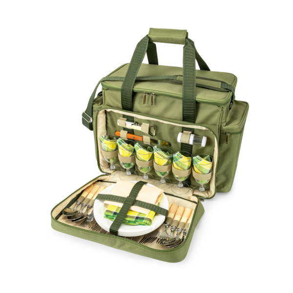 Великий набір для пікніка на 6 персон з ізотермічним відділенням на 20 літрів та двома ізотермічними чохлами під пляшки. Чудовий подарунок для поціновувачів пікніків й активного відпочинку на природі, завдяки якісним аксесуарам такий набір прослужить довго. Він розрахований на 6 персон, а отже можна буде зібрати велику компанію друзів і влаштувати веселий банкет на природі!