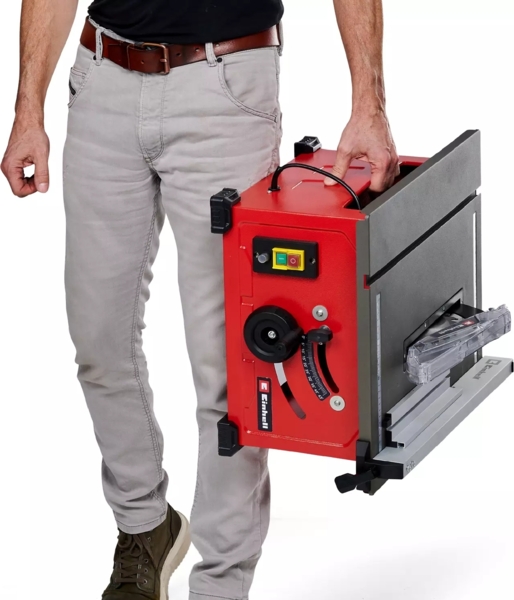 Для зручності транспортування і переносного використання, наприклад, на будівельному майданчику, настільна пила має компактну конструкцію вагою всього 10,8 кг і продумані тримачі для приладдя. Це означає, що її можна без проблем перевозити в багажному відділенні.