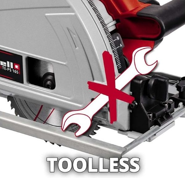 Пила погружная циркулярна Einhell TE-PS 165, це нова і зручна ручна погружная циркулярна пила, серії Expert. Призначена для багатоцільового використання як любителями так і професіоналами для здійснення поздовжніх, поперечних і похилих розпилів, а також заглибних пропилів в масивній деревині, твердих деревоволокнистих, деревостружкових та столярних плитах. Велика зручна ергономічна рукоятка з м'якою накладкою забезпечує хорошу фіксацію інструменту в руках, створюючи додатковий комфорт, а панель огляду забезпечує кращий огляд області різання, що робить тривалу роботу з ручною занурювальний циркулярною пилкою Einhell TE-PS 165 зручним і безпечним. Міцна алюмінієва підошва з чудовими легкими властивостями забезпечує чисту, точну і безперервну розпилювання. Адаптер пиловидалення може бути використаний для підключення пилососа для очищення робочого місця під час роботи. Підошва ручної занурювальний циркулярної пилки Einhell TE-PS 165 також підходить для використання з направляючою Einhell L2000 (купується окремо), що дозволяє легко зробити точний розпил.