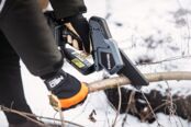 Мініатюрна акумуляторна ланцюгова пила Energy+ оснащена найсучаснішою системою, що базується на потужних акумуляторах Energy+. Бензопила сумісна з 18-вольтовим літій-іонним акумулятором. Інструмент призначений для використання в саду, для обрізання гілок в умовах обмеженого простору. Вона оснащена запобіжним гальмом, що захищає користувача від випадкового запуску інструменту. Довжина ланцюга становить 10 см та забезпечує максимальне обрізання гілок до 8 см. Ергономічна ручка забезпечує швидку та ефективну обробку деревини, а невеликий розмір пристрою дозволяє легко маневрувати та виконувати прості завдання.