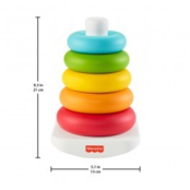 Пірамідка Fisher-Price - класична розвивальна іграшка для малюків. Вона має широку хитку основу та 5 різнокольорових кілець, які зручно хапати та складати маленькими ручками. Іграшка сприяє розвитку зорово-моторної координації та вчить малюка зіставляти предмети різного розміру, сортуючи та складаючи кільця від найбільшого до найменшого.