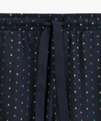 Штани прямого крою прикрашені візерунком у вигляді значків геолокації, доповнені бічними кишенями та манжетами по низу, які надають спортивного акценту та забезпечують ідеальну посадку. М'яка гумка та шнурок на поясі дозволяють регулювати комфорт по фігурі.