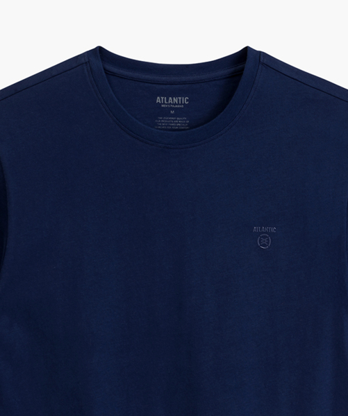 У комплект входить однотонна синя футболка з коротким рукавом і круглим вирізом – лаконічний дизайн та вільний крій роблять її зручною для сну та домашнього відпочинку.