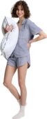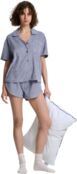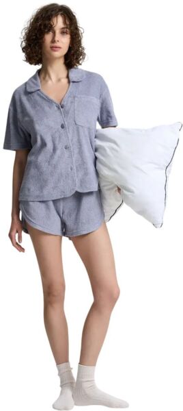 Жіноча піжама з м'якої махрової тканини — ідеальний вибір для комфортного відпочинку та сну. Комплект складається з сорочки вільного крою та шортів на еластичному поясі. Сорочка має класичний відкладний комір, короткі рукави та зручну застібку на ґудзики. Невелика накладна кишеня на грудях підкреслює стильність моделі. Шорти з м’яким поясом та шнурком забезпечують комфортну посадку, а фігурний крій додає легкості та свободи рухів. Завдяки приємній на дотик махровій тканині піжама чудово пропускає повітря, зберігаючи відчуття затишку та тепла. Ідеально підходить для домашнього носіння та комфортного сну.