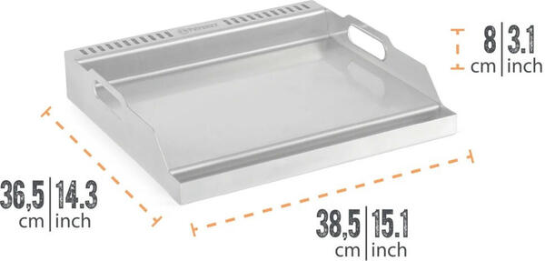 Доповнення до газової плити Petromax, що дозволяє готувати барбекю в іспанському стилі a la plancha. Працює у комплекті з плитою Petromax Gas Table будь-якого розміру (на одну чи дві конфорки). На сталевій планчі можна професійно готувати делікатеси і у власному саду, і в подорожах — адже плиту Petromax Gas Table створено передовсім для пересувної кухні. Це гарне рішення для кемпінгу, дачі, рибальства, автоподорожей.