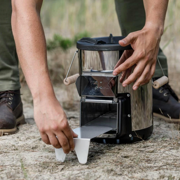 - Доповнена аксесуарами, плита Petromax Rocket Stove перетворюється на мінімалістичне пересувне барбекю. Дозволяє готувати грильовані делікатеси в далеких подорожах, і на пікніку в міському парку.