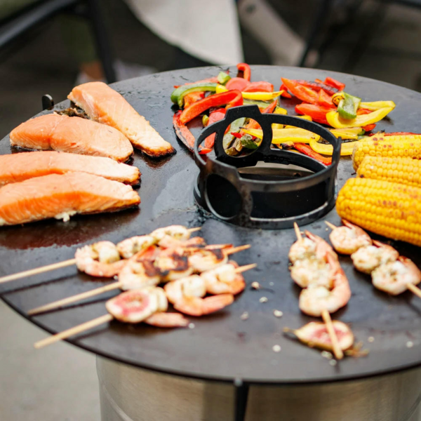 - Перегородка Cooking Attachment ставиться на центральний отвір планчі й перешкоджає падінню продуктів у вогонь. Згори можна розмістити посуд, щоб готувати страви, соуси чи гарячі напої (чай, глінтвейн, шоколад). Аксесуар входить до комплекту.