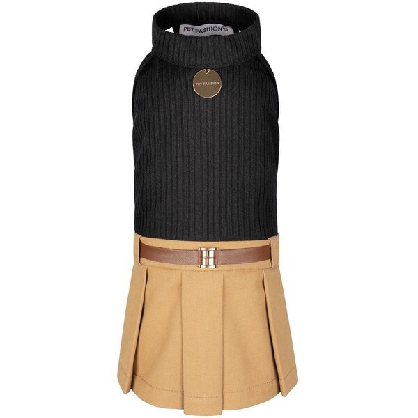Сукня Chic – це втілення класичної елегантності. Лаконічний верх з комірцем-стійкою, спідниця зі складками та тонкий шкіряний пасок. Вишуканості додають медальйон на комірці і пряжка на поясі. Без застібок.