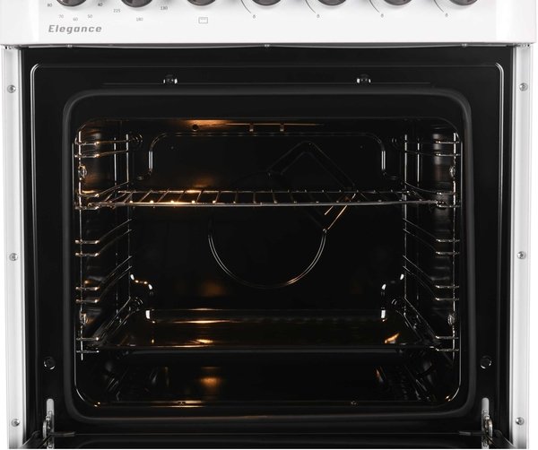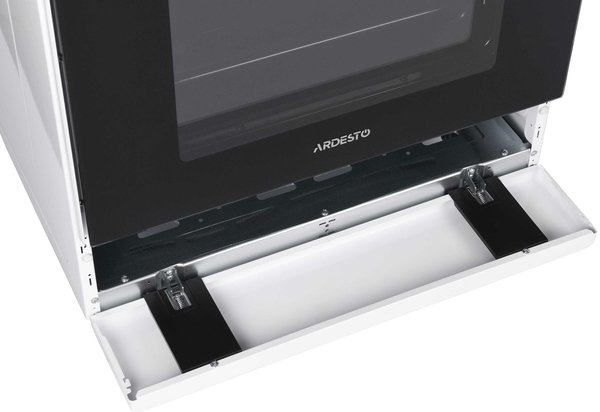 Електрична духовка плити ARDESTO Elegance FSCF-C604W належить класу енергоефективності B. Об'єм духової шафи – 72 л. Внутрішня поверхня емальована – нескладна у догляді, практична та стійка до високої температури. Наявне підсвічування полегшує спостереження за процесом приготування смаколиків. У нижньому відкидному відділенні зручно зберігати посуд та кухонне начиння. Дверцята мають подвійне скло, що унеможливлює опіки.