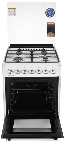 Плита ARDESTO Elegance FSCF-C604W класичного білого кольору. Належить до типу комбінованих: газова поверхня, духовка – електрична. Пристрій безпечний, що підтверджує клас I. Поверхня має чотири конфорки (пальники) круглої форми, захищені чавунними решітками, що знімаються. Автоматичне запалювання, в ручці.