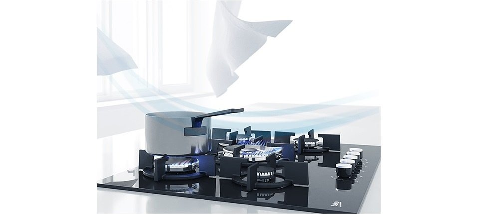 Коли вас немає поруч, полум’я може легко згаснути, і ваш дім наповнюватиметься небезпечним газом. Коли полум’я в конфорці згасає через рідину, що витекла з каструлі, або порив вітру, функція захисту від витікання газу визначає це та перекриває подачу газу. Жодної небезпеки, жодних турбот.