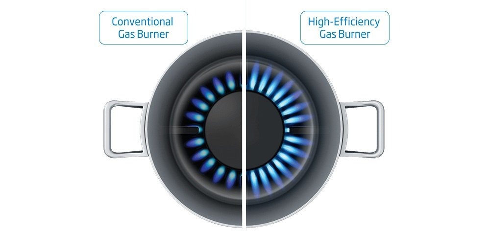 Не позбавляйте себе здорової їжі через напружений день. Тепер ви зможете швидше й ефективніше готувати будь-які страви на газовій варильній поверхні. Високоефективні газові конфорки споживають менше газу та прискорюють процес приготування порівняно зі стандартними конфорками. Тому навіть коли у вас замало часу, ви зможете швидко приготувати смачну й корисну вечерю.