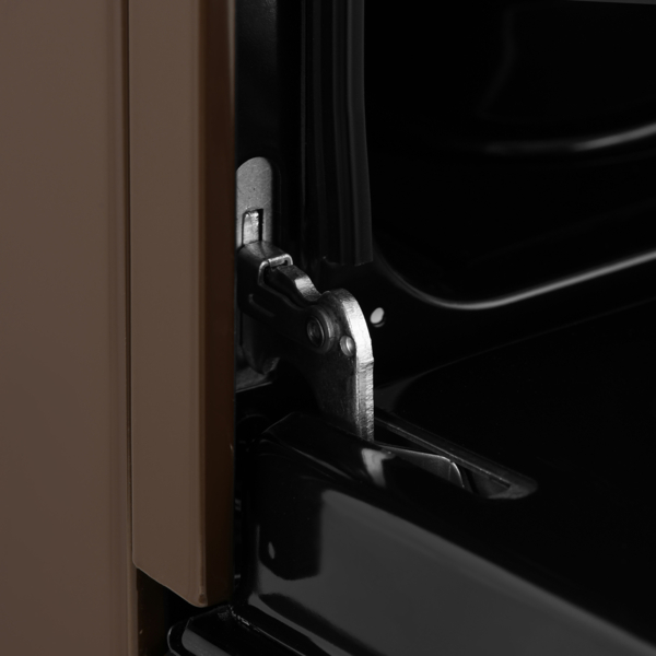 Об’єм газової духової шафи становить 50 л. Її оснащено нижнім та верхнім нагрівальними елементами потужністю 2,75 та 2,2 кВт відповідно, що зумовлює рівномірне приготування страв з обох боків. Завдяки п’ятьом рівням рельєфних напрямних зручно розташовувати решітку або деко залежно від об’єму страви. Дверцята мають два термостійких скла, до того ж внутрішнє за потреби можна зняти – це спрощує догляд і забезпечує гігієнічність. Емальовану поверхню внутрішньої камери легко очистити, тому її не потрібно довго відтирати після приготування, наприклад, м’ясних страв із соусом.