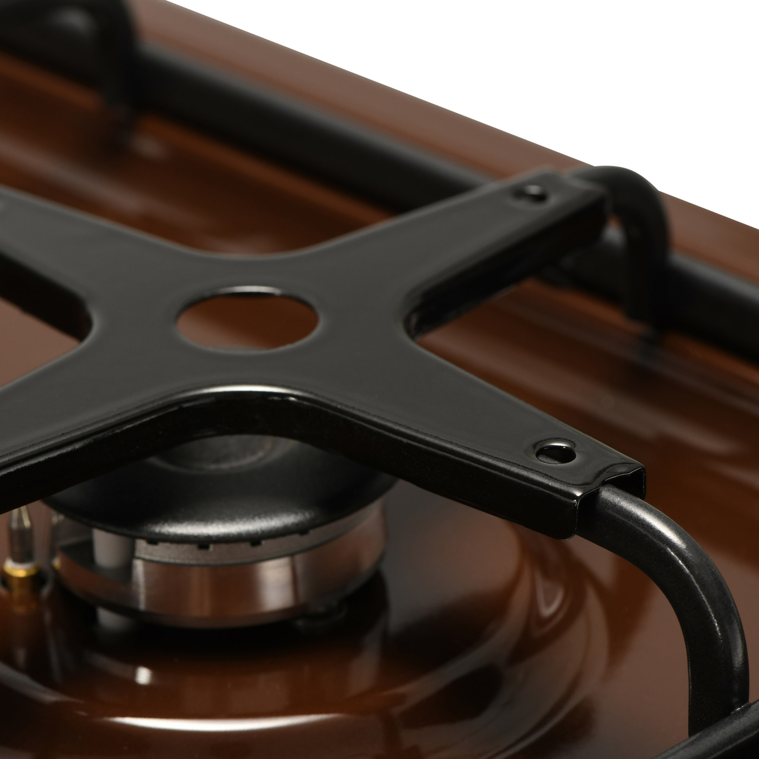 Конструкцією передбачено механічний таймер, який допомагає не проґавити момент готовності страви. Плиту укомплектовано решіткою, стандартним деко та додатковими форсунками для скрапленого газу (LPG). Вага пристрою – 30,3 кг, що свідчить про міцність конструкції.