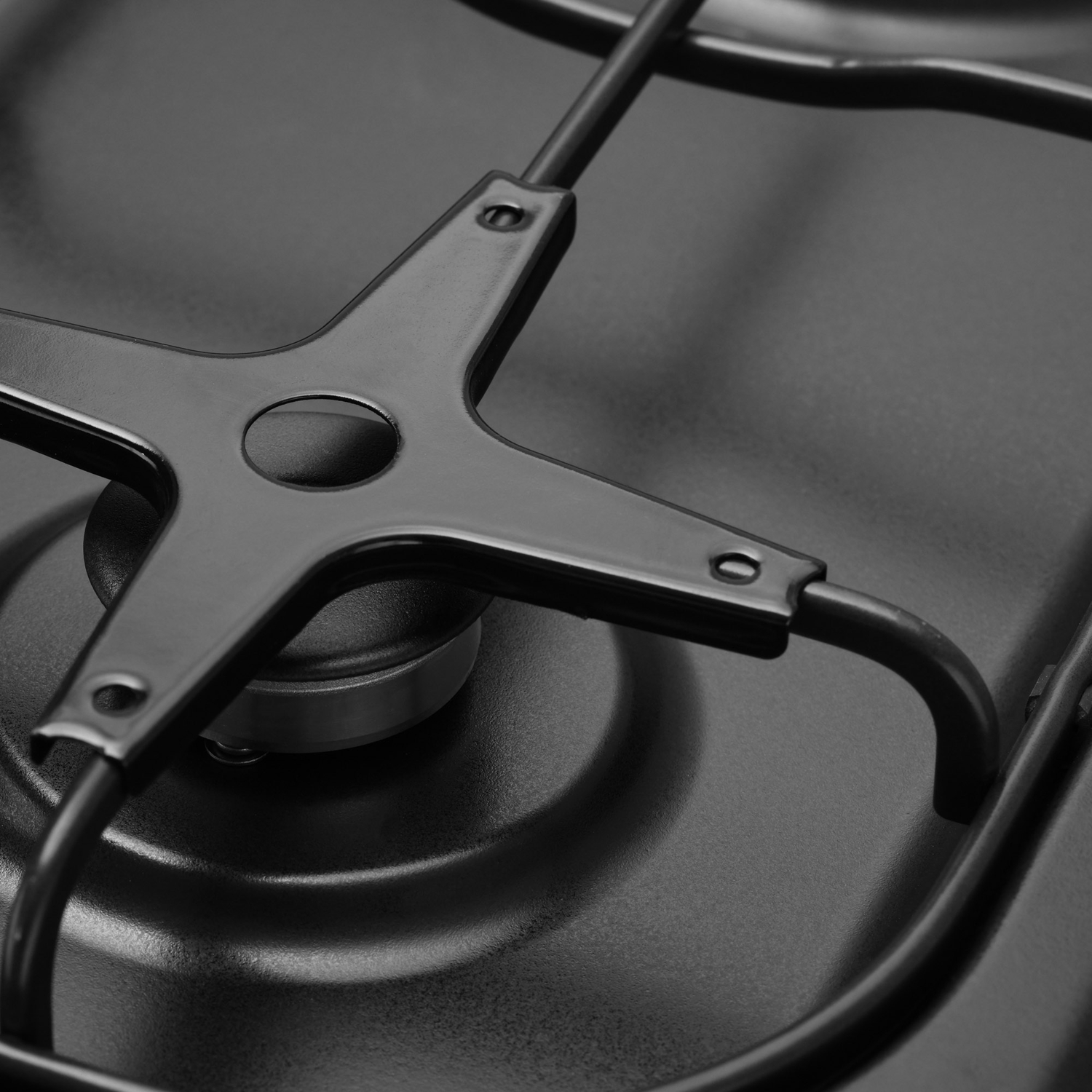 Конструкцією плити передбачено чотири газові конфорки: швидка конфорка потужністю (2,6 кВт) незамінний під час інтенсивного готування, дві конфорки (1,55 кВт) оптимальні для повсякденних страв, а допоміжна конфорка (0,9 кВт) – те, що треба для готування соусів або повільного тушкування.