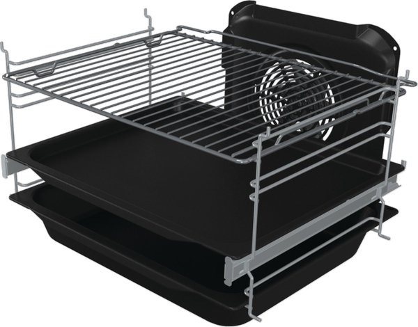 Поєднання продуманого руху повітря, рівномірного розподілу простору між позиціями деко та спеціальної злегка закругленої порожнини забезпечує рівномірне пропікання страв на кожному рівні, а оскільки об'єм духовки більший, то і відмінний огляд.