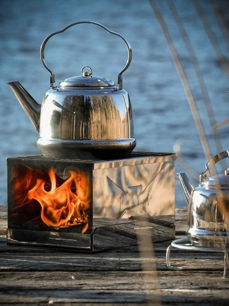 - Прилад слугує екологічною заміною багаттю, адже полум’я горить усередині сталевої топки. Щоб розігріта плита не пошкодила лісову підстилку, краще підкласти під неї палиці чи каміння або використовувати додаткові ніжки Petromax Legs for Pocket Stove, що підіймають дно над землею.