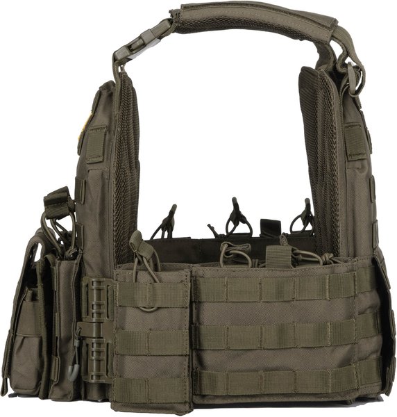 Плитоноска 2Е Tactical Combat - це продукт, призначений для перенесення різного устаткування, включно з магазинами для автоматів АК-74. До комплекту входять 8 чохлів для магазинів. Плитоноска виготовлена з поліестеру 1000 DEN і нейлону, і має колір зеленого (OD Green). Вона оснащена швидким скиданням, додатковими кишенями та підсумками для зберігання і зручності використання. Вага плитоноски становить 2,2 кг. Вона ідеально підходить для використання на полі бою або в інших умовах екстремальних навантажень.