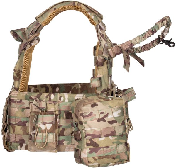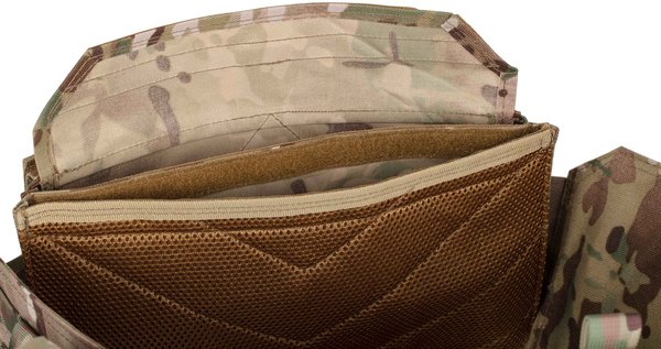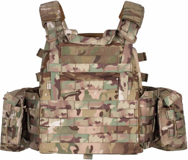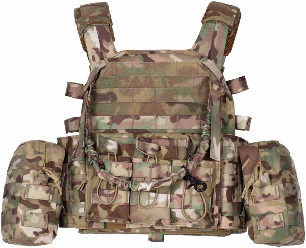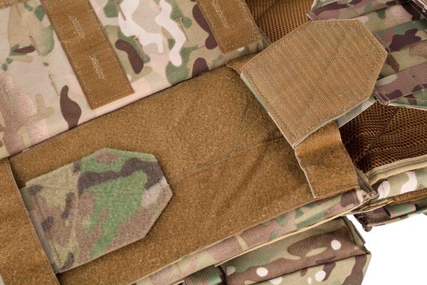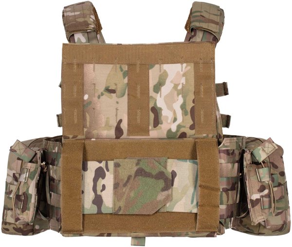 Плитоноска виготовлена з поліестеру і товстої нейлонової тканини з особливою структурою нитки, що має водовідштовхувальне просочення і поліуретанове покриття. Важливою особливістю моделі є наявність бічних відділень для балістичних плит, що забезпечують додатковий захист тіла від осколкових уражень. На плечових накладках вшита стрічка velcro для регулювання виробу за висотою. Крім того, можна підлаштовувати виріб і під об'єм грудної клітки: для цього спереду і ззаду також є ворсиста блискавка. Виконаний у кольорі мультикамуфляж (MultiCamo), плитник оснащений одноточковим ременем для зброї, регульованим за довжиною.