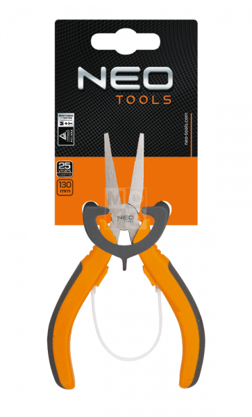 Плоскогубці прецизійні NEO, розмір 130 мм. Довгі, плоскі губки із зубцями забезпечують міцний захоплення. Міцна нейлонова пружина полегшує роботу. Двокомпонентні, ергономічні рукоятки підвищують комфорт експлуатації. Якість інструменту підтверджено сертифікатом TÜV і 25-річною гарантією виробника. Бренд NEO виправдовує очікування професіоналів.