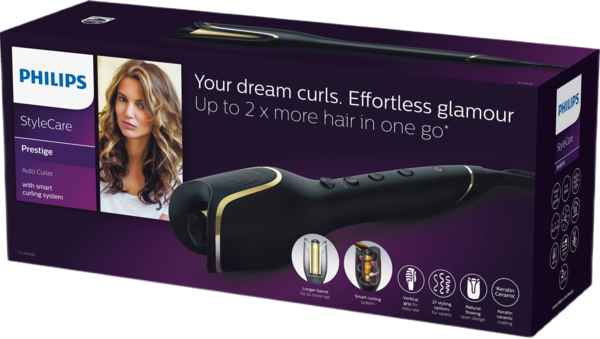 Автостайлер Philips StyleCare Prestige дозволяє автоматично й без зусиль створити локони Вашої мрії завдяки його інноваційній розумній системі завивки.