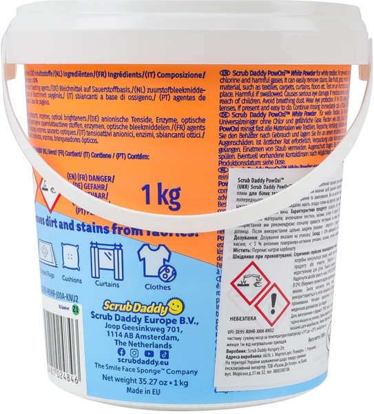 - Плямовивідник-відбілювач Scrub Daddy Power Oxi White для білих тканин 1 кг