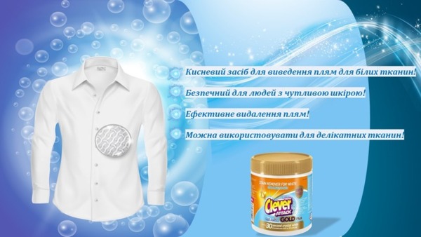 Схожі товари Плямовивідник Clever Attaсk для білих речей 730 г