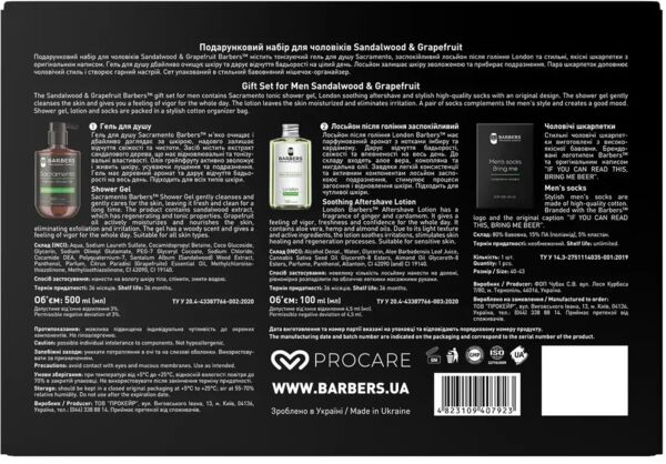 - Подарунковий набір для чоловіків Barbers Sandalwood & Grapefruit