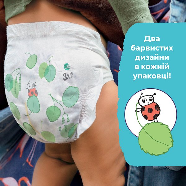 Еластичний поясок ззаду, застібки, що тягнуться, і м'які гумки навколо ніжок дають змогу надійно фіксувати підгузок, абсолютно не обмежуючи рухів малюка. А завужені спереду і ззаду боковини допомагають йому прекрасно сидіти, ідеально повторюючи фігурку малюка.