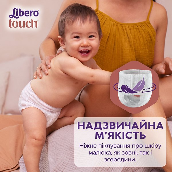 Libero Touch - це наші найм'якші і cуперпреміальні підгузки-трусики, зручні, ніби зшиті кравцем.