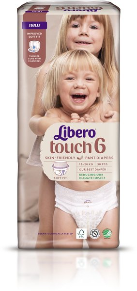 Трусики Libero м'які і тонкі, не містять лосьйонів. Вони розроблені таким чином, щоб дозволяти шкірі дихати і при цьому чудово вбирають. Гнучка посадка трусиків забезпечує ніжне і надійне прилягання до животика малюка. Перевага трусиків у тому, що їх легко зняти та одягнути — це може зробити навіть ваш малюк! Підгузки Libero створені з турботою про малюка і про навколишнє середовище. При виробництві підгузків ми використовуємо тільки якісні матеріали, відповідаючи принципам дбайливого ставлення до природи (сертифікат FSC, Nordic Ecolabel). Вся продукція Libero тестується дерматологічно і підходить малюкам з чутливою шкірою (сертифікат Asthma Allergy Nodric). Доведено зниження кліматичного впливу на 16-25% за весь життєвий цикл продукції Libero, а саме скорочення викидів вуглекислого газу (CO2). За рахунок реалізації концепції > 50% відновлюваної упаковки і відновлюваної електроенергії Libero досягне додаткового зниження на 4.6%.