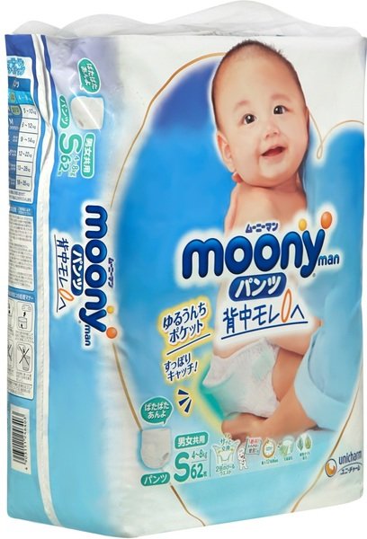 Підгузки-трусики Moony Розмір S 4-8 кг 62 шт
