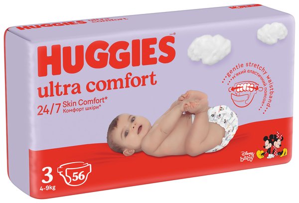 Підгузки Huggies (Хаггіс) Ultra Comfort поглинають рідину за лічені секунди, забезпечують сухість та комфорт, дарують відчуття спокою для батьків та дитини.