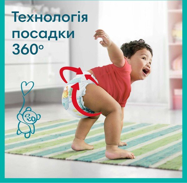 - Забезпечте своєму активному малюкові ідеальну посадку та захист від Pampers